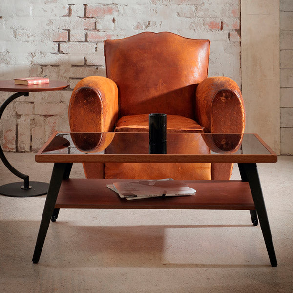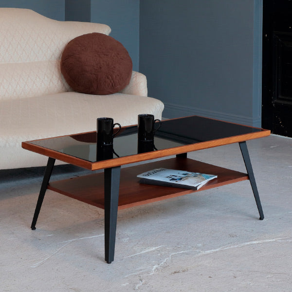 ●天然木のフレームに囲まれた美しいガラス天板のリビングテーブルです。