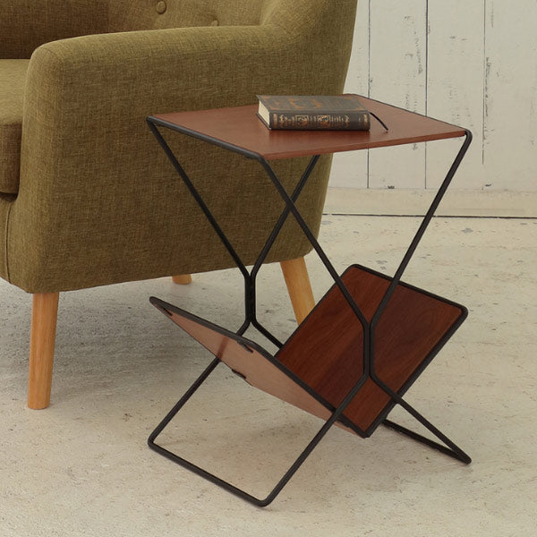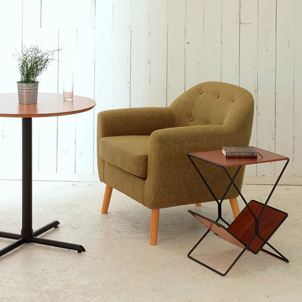 シンプルながら、インテリアのアクセントになるデザインです。ソファの横に置いても使いやすく、天板下のラックには、お好みの雑誌などを見せながら収納することができます。