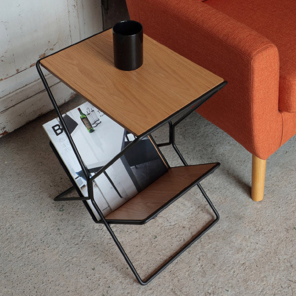 華奢なスチールフレームがあたたかみのある木目を活かした、スタイリッシュなサイドテーブルです。