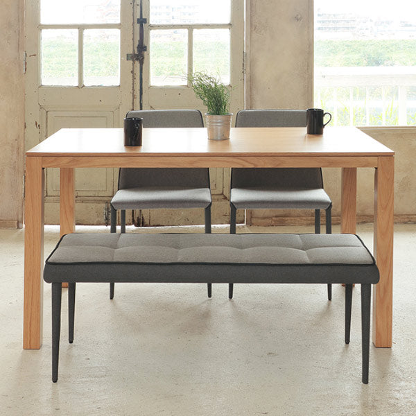 スチールフレームと薄型のファブリックの座面が、スタイリッシュで落ち着いた雰囲気のダイニングベンチです。クッション材には、ほどよい弾力のあるウレタンフォームを使用しています。しっかりと安心して座れる座面で、座り心地よく、くつろぎの時間を過ごせます。