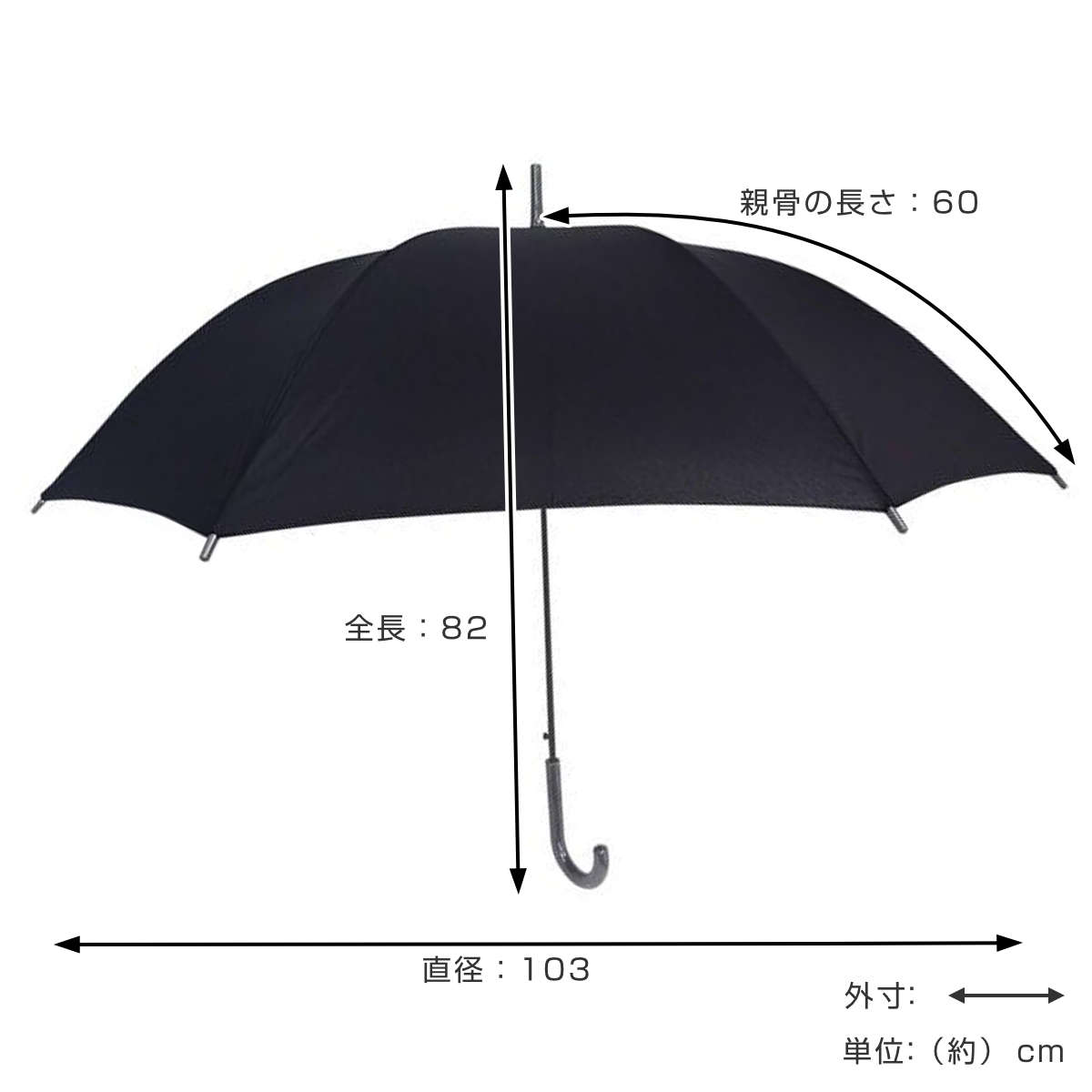 直径約103cmの大判サイズで、雨の日も肩までしっかりガードできるため、安心してお使いいただけます。