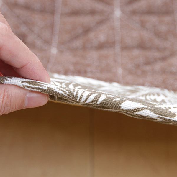 床を傷つけにくい不織布通気性・耐久性・保湿性に優れた裏面不織布仕上げで、床への傷が軽減されます。加えて、滑りにくい加工が施されています。 |