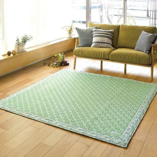 キルトラグは派手すぎない自然なお洒落さがあり、派手なインテリアを好まない方にもおすすめです。爽やかなボタニカルテイストのデザインと心地良い肌触りで、お部屋をリラックス空間へと変えます。