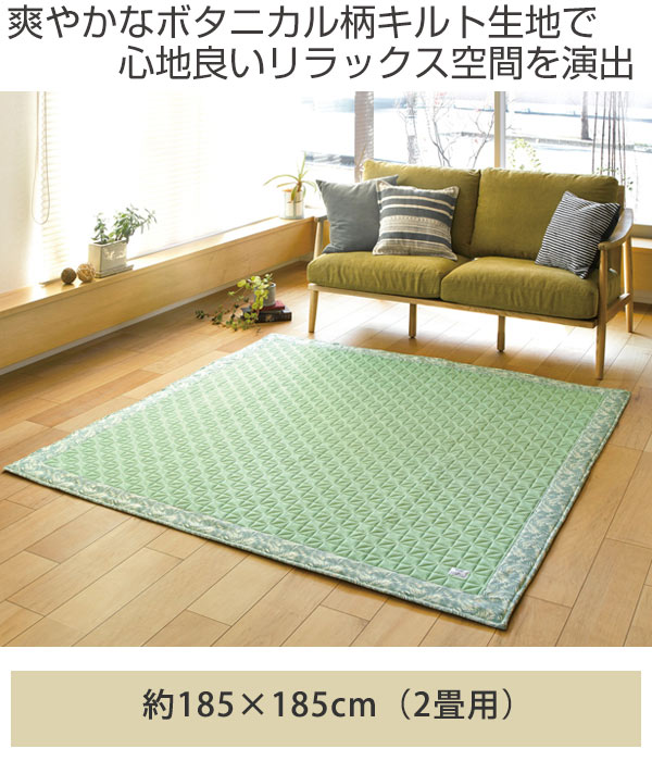 お部屋馴染みの良いボタニカル柄キルトラグ