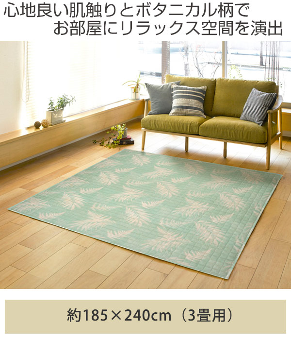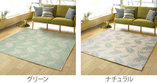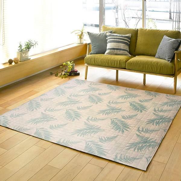 キルトラグは派手すぎない自然なお洒落さがあり、派手なインテリアを好まない方にもおすすめです。爽やかなボタニカルテイストのデザインと心地良い肌触りで、お部屋をリラックス空間へと変えます。