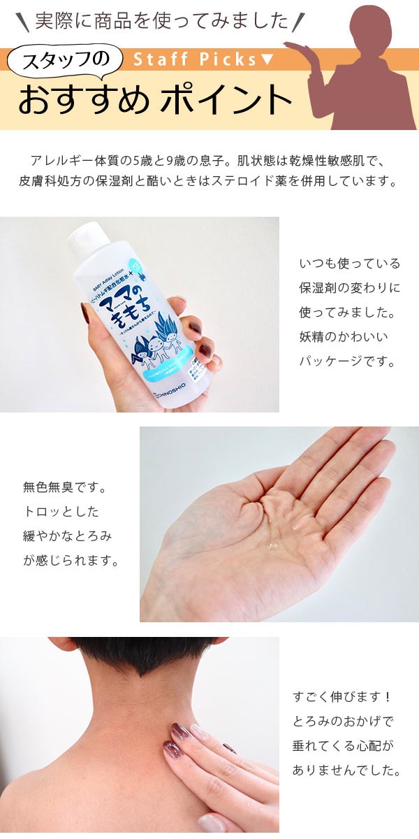 ●ゆるやかなとろみのあるローションで、赤ちゃんやお子さまへのケアも簡単です。