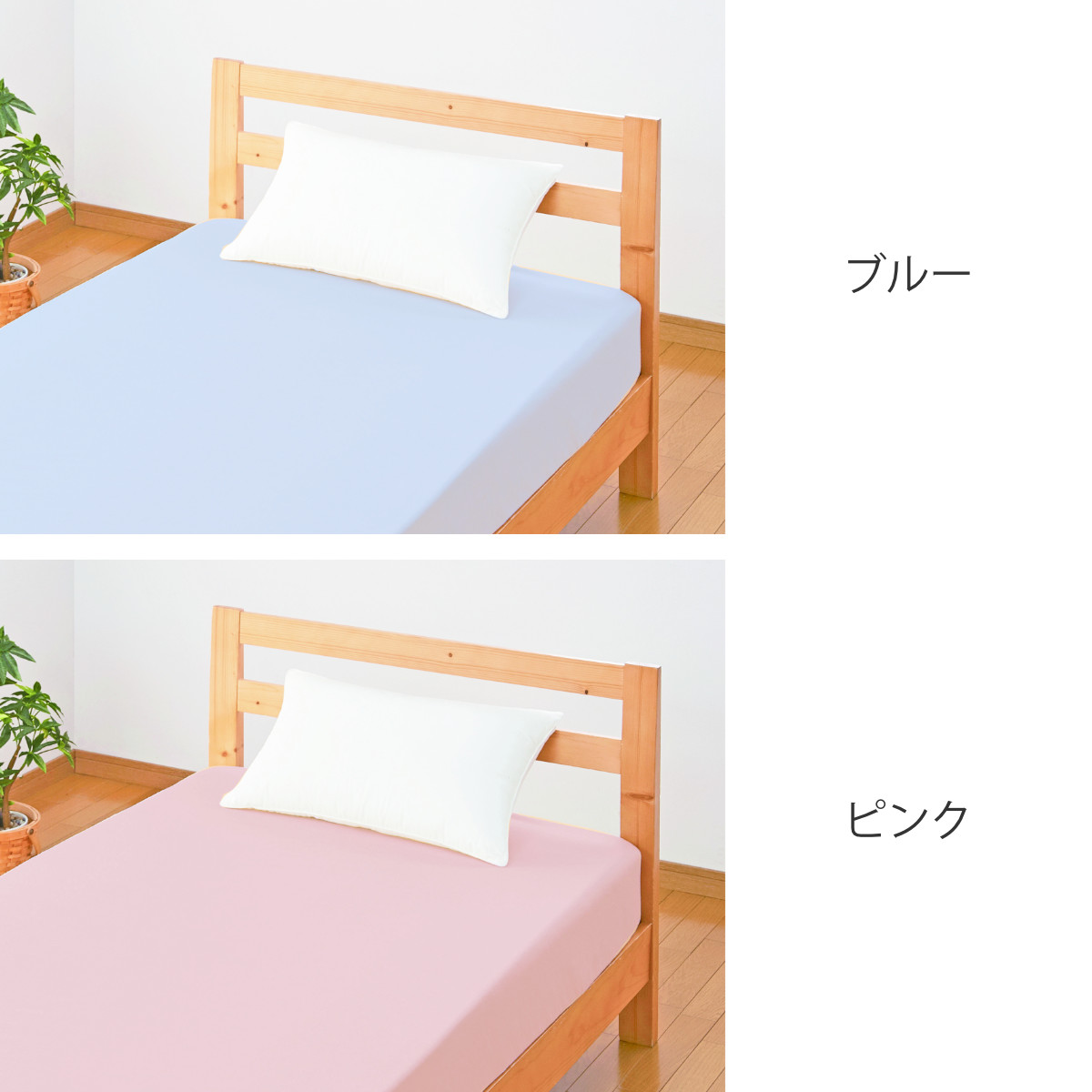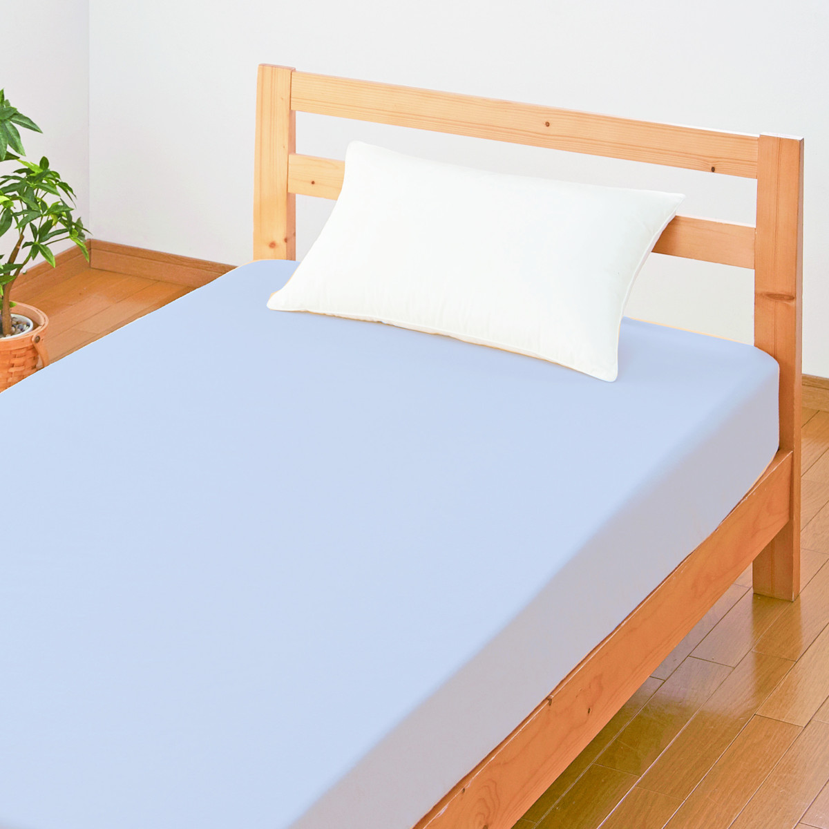 ささっと着脱できる快適な寝心地のボックスシーツです。綿100%の生地を使用した安心の日本製です。明るい色味で清潔感のある2色からお選びいただけます。