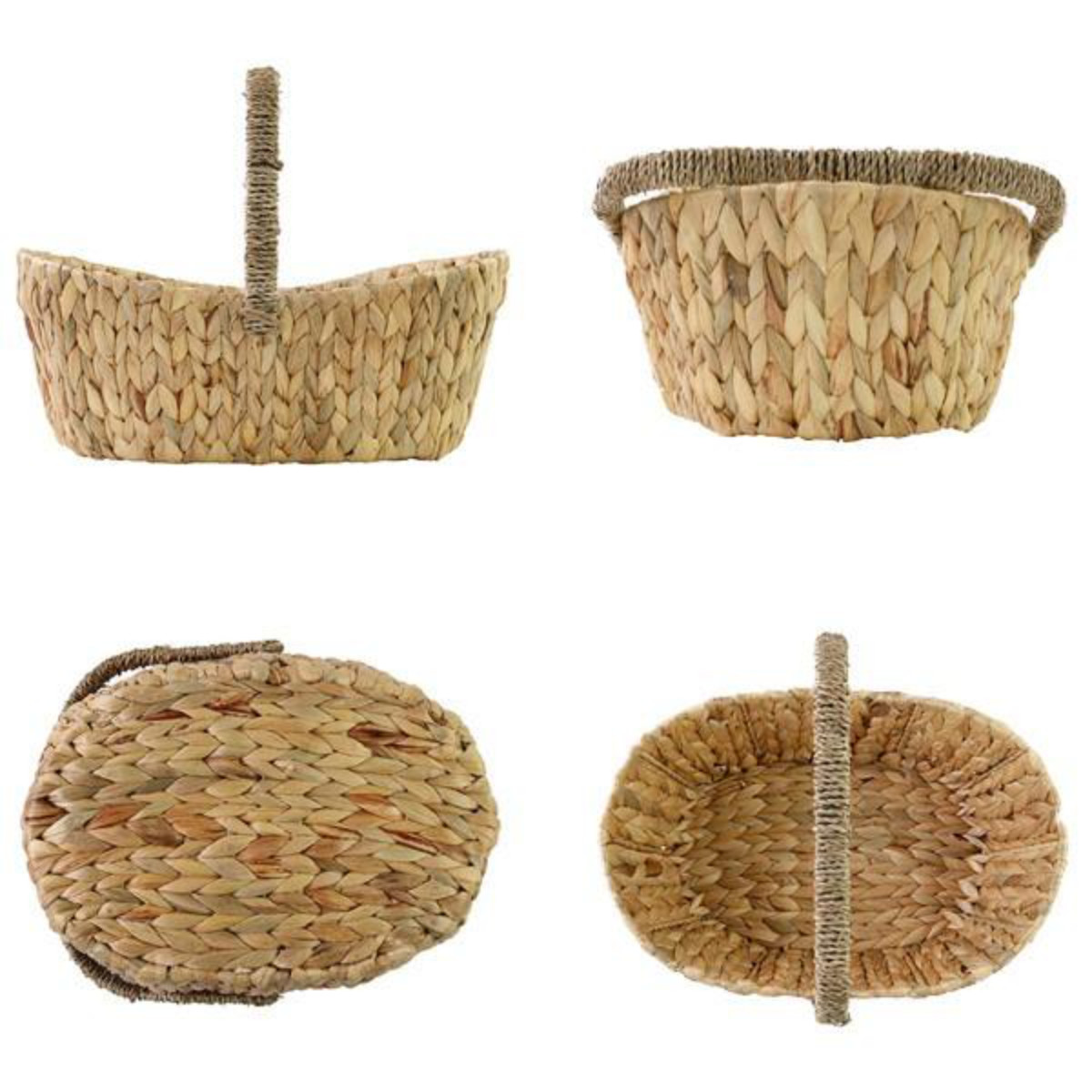 収納 バスケット ウォーターヒヤシンスト 楕円形 持ち手付き 幅42×奥行29×高さ14cm