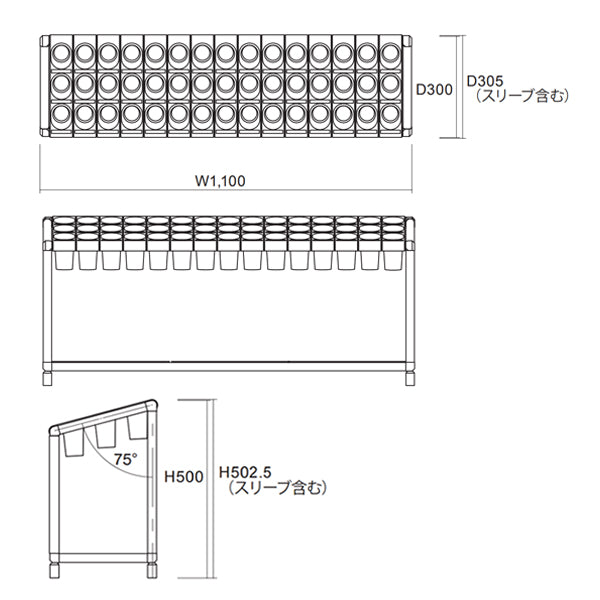 ●一傘一マス収納のスリーブ式傘立て45本用です。