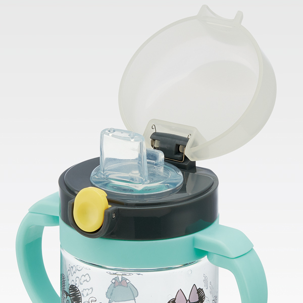 お子様でも扱いやすい、飲み口が柔らかいシリコン製です。少しずつ飲む事ができるので練習用にピッタリです。また、キャップを後ろに90度倒すと固定されるので飲みやすくなります。