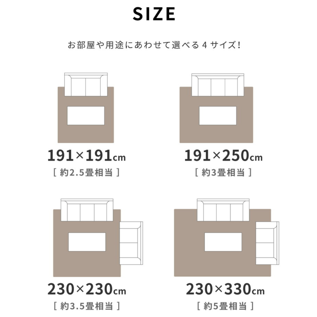 ※こちらは191×250cm 約3畳用のページです