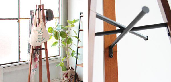 天然木とスチールの組み合わせがオシャレなポールハンガー