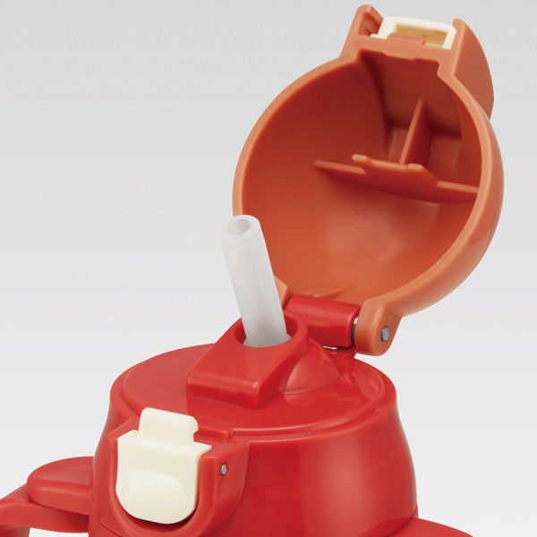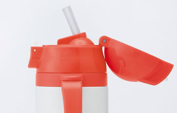 小さなお子様でも扱いやすい、柔らかいシリコン製のストローです。また、キャップを後ろに倒すと固定されるので飲みやすくなります。