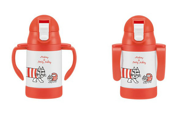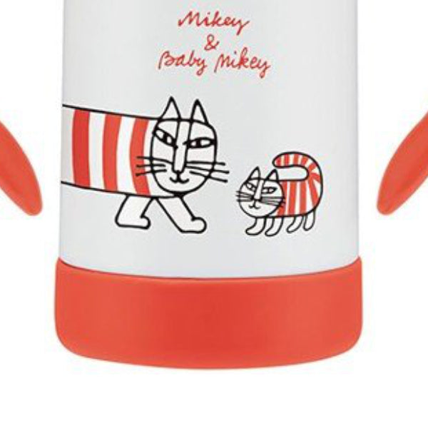 赤ちゃんの小さな手でもしっかりと持ちやすい、持ち手が両方についたベビーストローマグです。真空二重構造なので、夏でも冷たさをキープしてくれます。カチッと閉まる漏れないキャップや、滑りにくい底カバーなど使いやすさを追求して作られています。容量約240mlと初めてのマグにピッタリなサイズです。リサ・ラーソンの描く猫のマイキーがデザインされていて、楽しくストロー飲みの練習が始められます。
