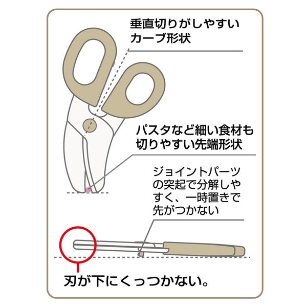 | 材質 | ハサミ本体:ABS樹脂(耐熱温度80度)、ハンドル:エラストマー樹脂(耐熱温度60度)、ケース:ポリプロピレン(耐熱温度100度) |