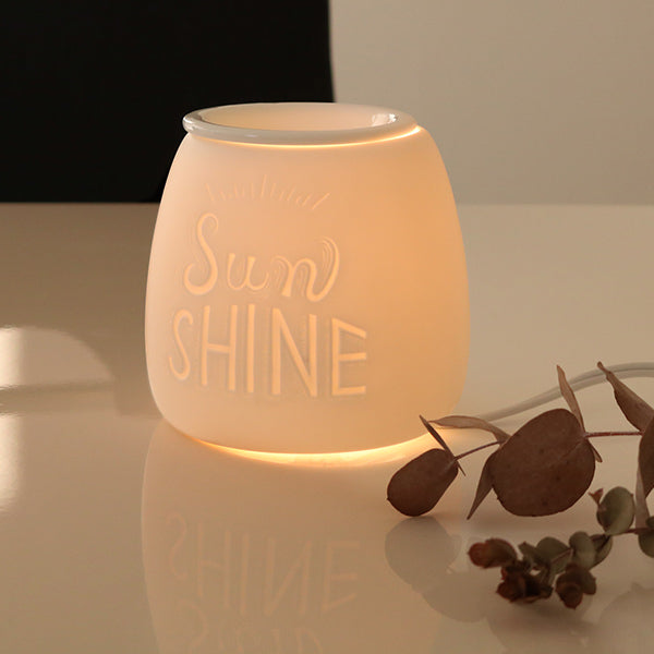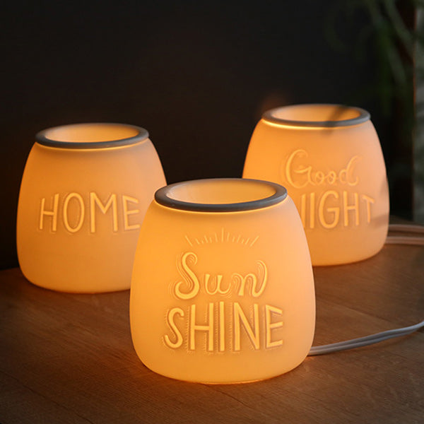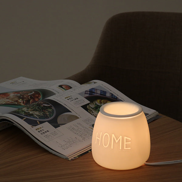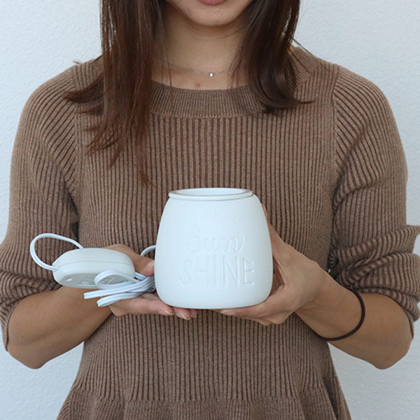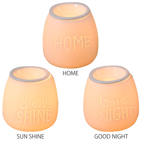 お家で使うことをイメージし、落ち着きのある穏やかな灯りが、ゆっくりと温かく感じられるよう、角を付けない緩やかな丸い形になっています。陶器でできたアロマランプなので、優しい光を灯してくれます。