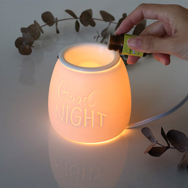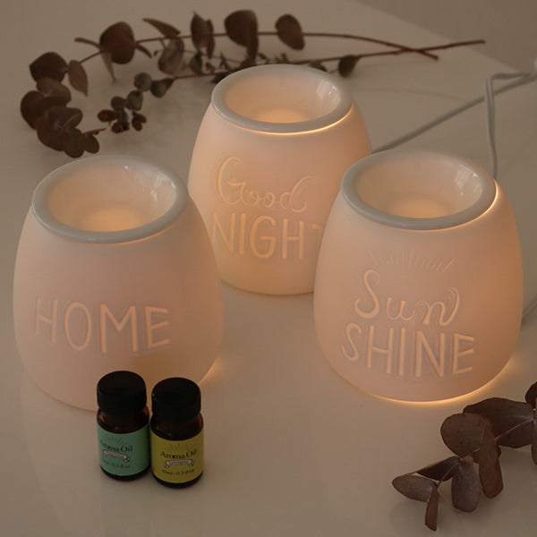オイル皿にアロマオイルを垂らすと、電球の熱で温められて蒸発し、香りがやわらかく広がります。香りと灯りで癒しのひと時をお過ごしください。オイルの種類によりますが大体2〜3時間楽しんでいただけます。