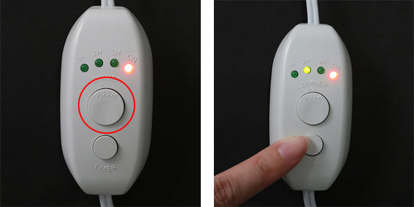 調光も可能 PUSHボタンを長押しすると、5〜20秒ほどで徐々に光が弱くなります。お好きな光量のところで手を放してください。 |