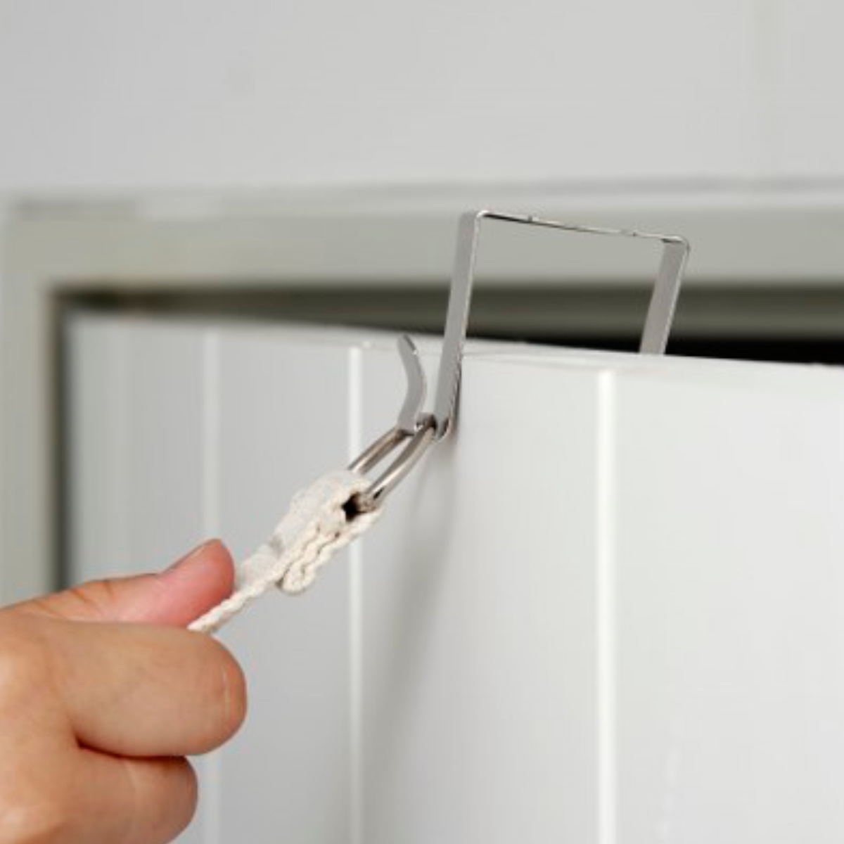 ドアの上に金具を引っ掛けるだけ。簡単に取り付けられます。