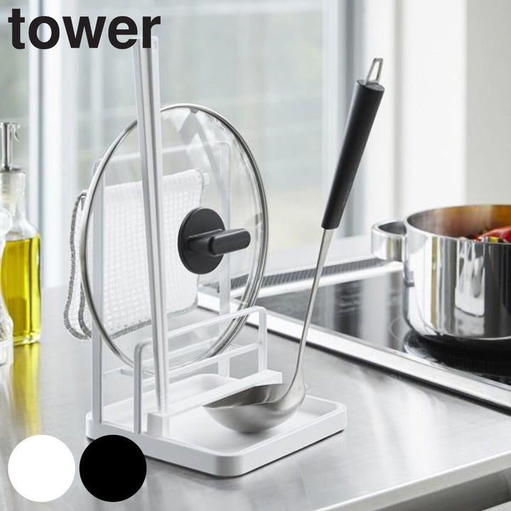 お玉や菜箸、鍋蓋だけでなく、布巾などもまとめて一括収納できます。
