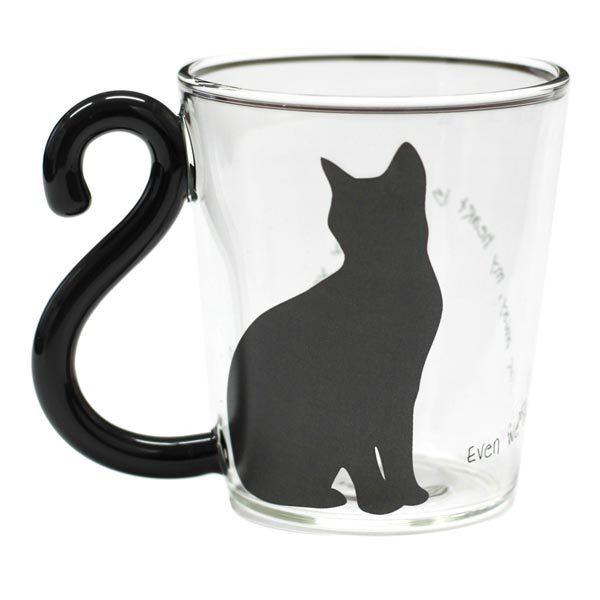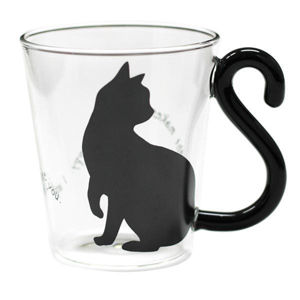 ●黒猫のシルエットがかわいい耐熱ガラスのマグカップです。