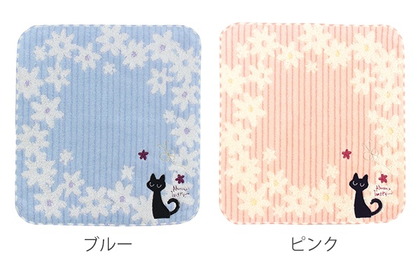 ●猫の刺繍がポイントのジャガード織りのふっくらしたタオルハンカチです。