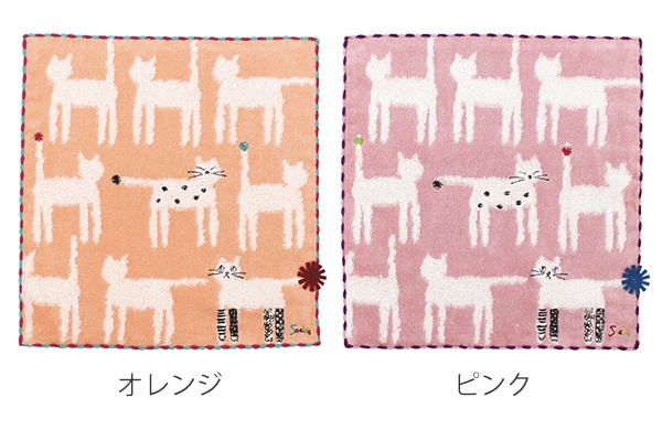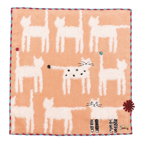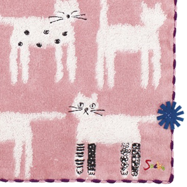 猫のシルエットと、なんとも言えない表情のソックスCATがとっても可愛いタオルハンカチは、自分用にも贈り物にも最適です。シルエットの猫のしっぽの向きが上だったり横だったりするのも表情があっていいです。