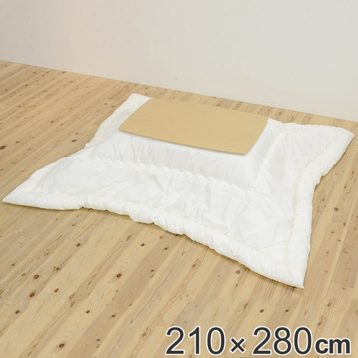 210×280cmの長方形タイプのこたつ布団です。素材にこだわり国内生産をしております。カバーの付いていないヌード布団なので、お部屋の雰囲気や気分に合わせてお好きな柄のカバーを付け替えてお使いいただけます。
