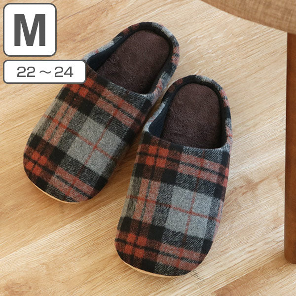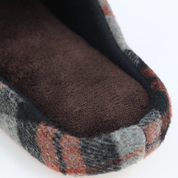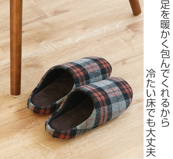 タータンチェック柄の甲部分には起毛素材を採用、ほっこりとした雰囲気に仕上げており、身も心も暖めてくれそうな寒い季節におすすめのスリッパです。