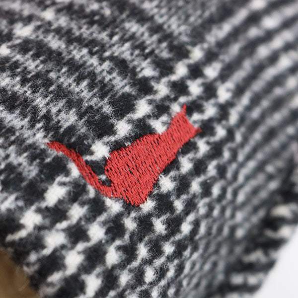 グレンチェック柄に猫の刺繍がワンポイントになったスタイリッシュなデザインです。