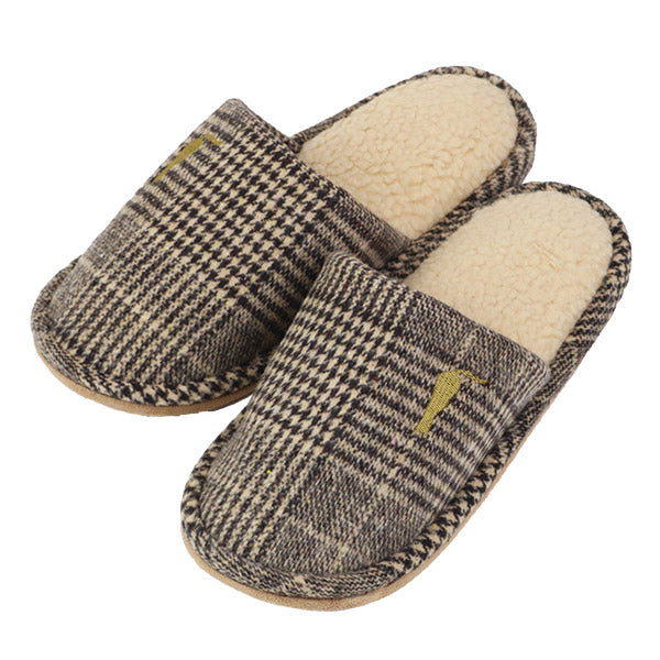 マイクロボアとウール素材で身も心も暖めてくれそうな、寒い季節におすすめのスリッパです。