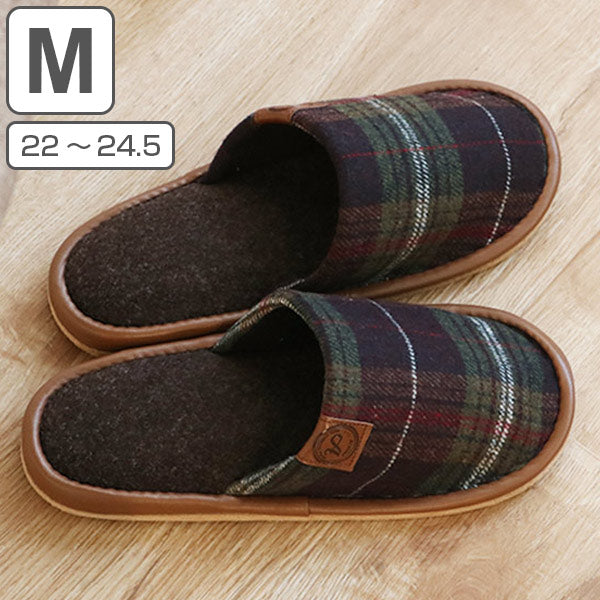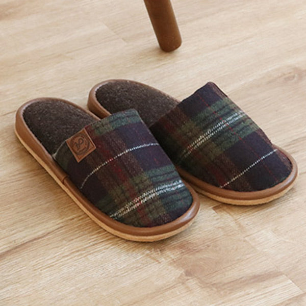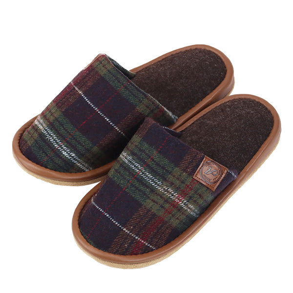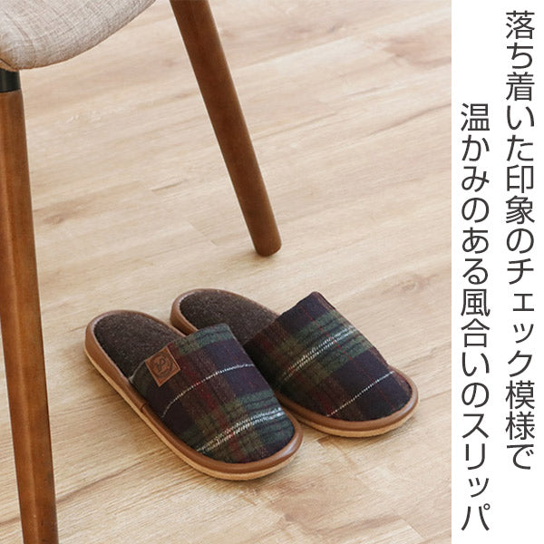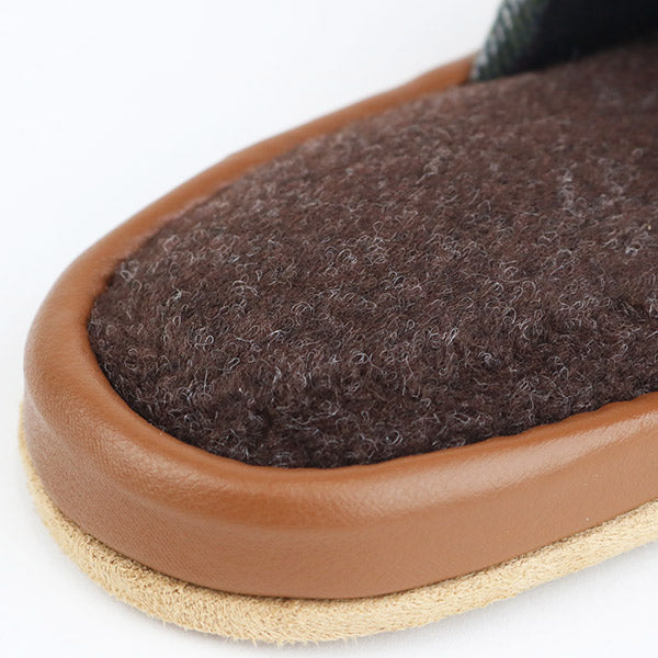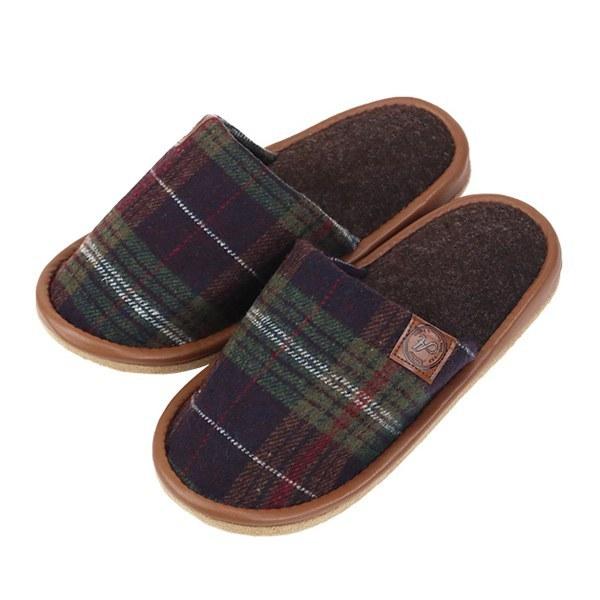 ツイード調の生地とチェック模様が季節感漂うデザインのスリッパです。ブラウンを基調とした穏やかな色合いで寒い冬に彩りと温かみを与えてくれます。また、落ち着いた色合いなのでお部屋にも馴染みやすいです。