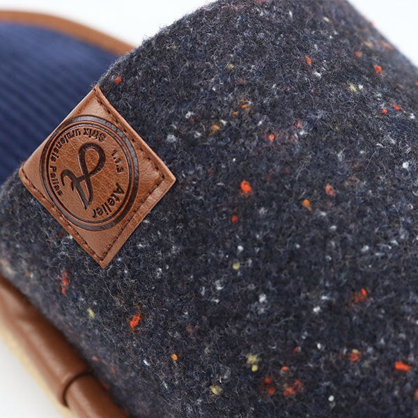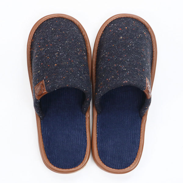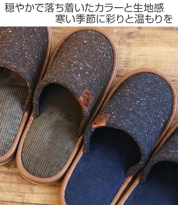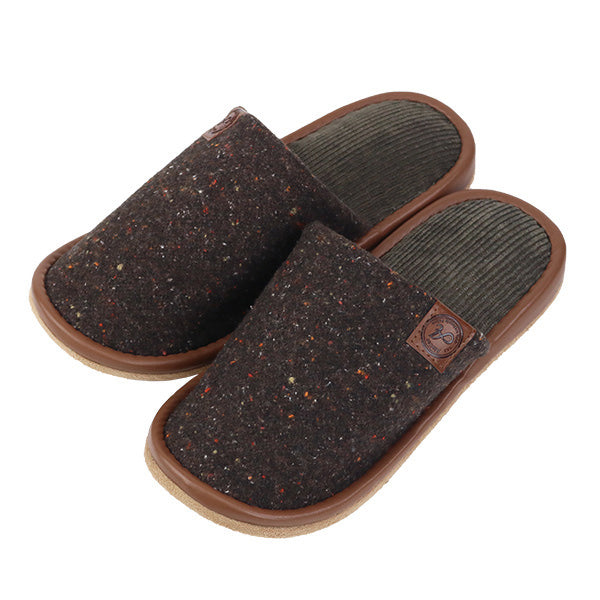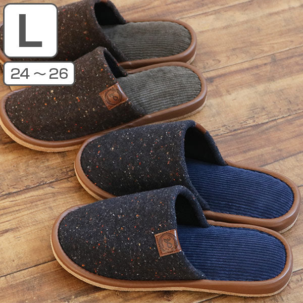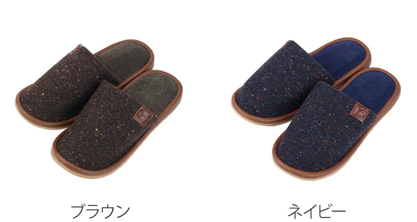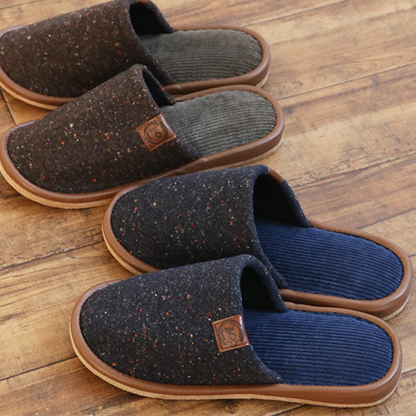 季節感のあるネップニットと秋冬らしいカラーが落ち着いた印象のスリッパです。コーデュロイ調の中板がレトロな雰囲気も醸し出しています。上品な印象もありながら、寒い季節に彩りと温もりを与えてくれます。Lサイズは、カラーはブラウンとネイビーの2種類があります。