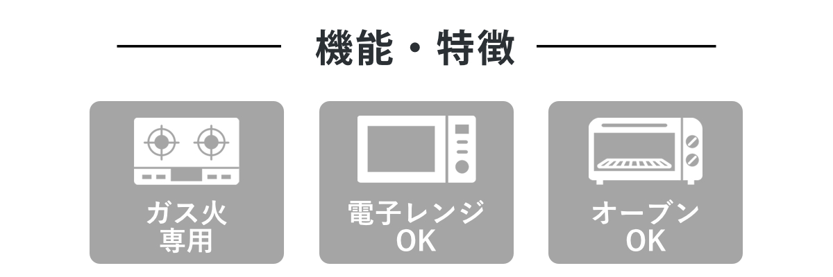 ●ガス直火・電子レンジ・オーブンに対応しています。
