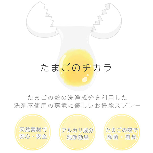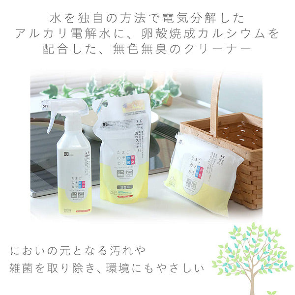 ●水を独自の方法で電気分解したアルカリ電解水に、卵殻焼成カルシウムを配合した無色無臭のクリーナーです。