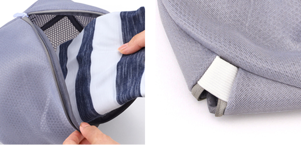 ファスナーカバー付き 洗濯中に口が開いてしまうのを軽減します。 |
