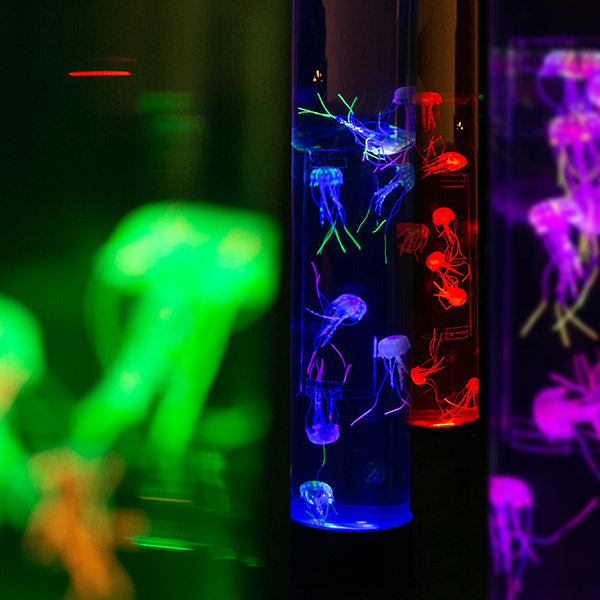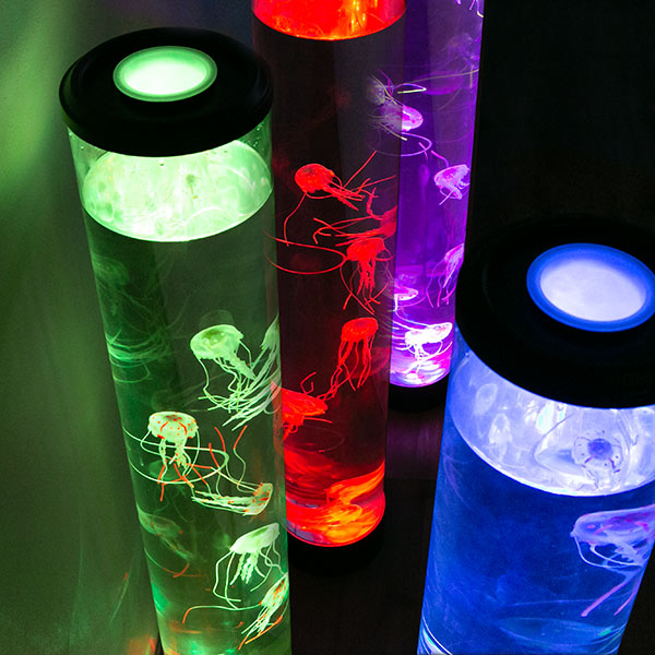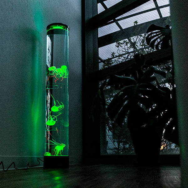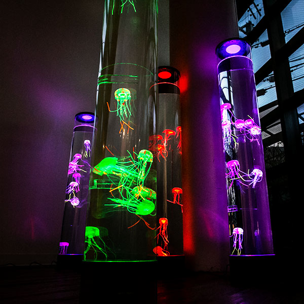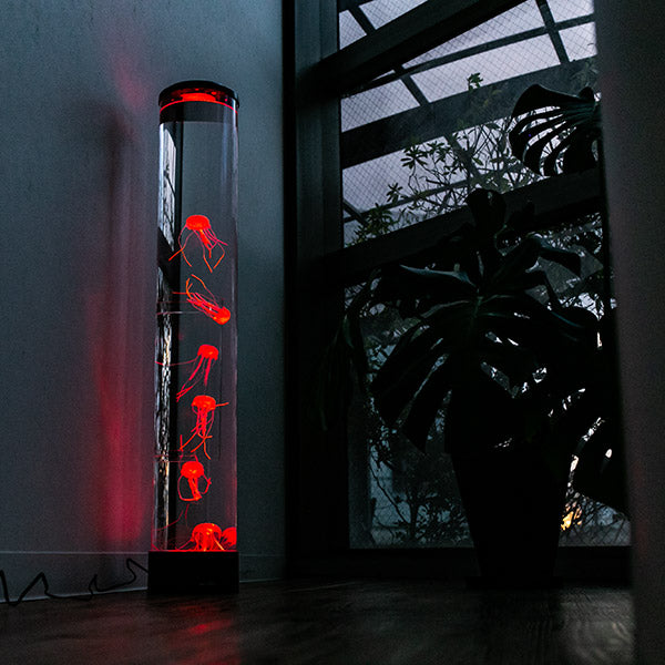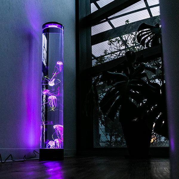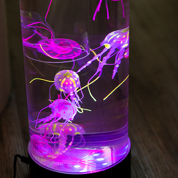 まるで本物のようなクラゲたち本物のようなクラゲたちがゆらゆらと泳いでいる水槽のように見えるライトです。水族館にあるクラゲの水槽がお家に置いてあるようなとっても魅力的なインテリアライトです。合わせて何本も置くと水族館の雰囲気がより味わえます。