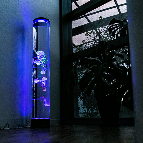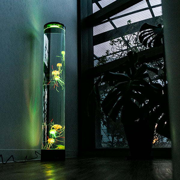 本物のようなクラゲたちがゆらゆらと泳いでいる水槽のように見えるライトです。水族館にあるクラゲの水槽がお家に置いてあるようなとっても魅力的なインテリアライトです。合わせて何本も置くと水族館の雰囲気がより味わえます。