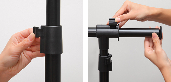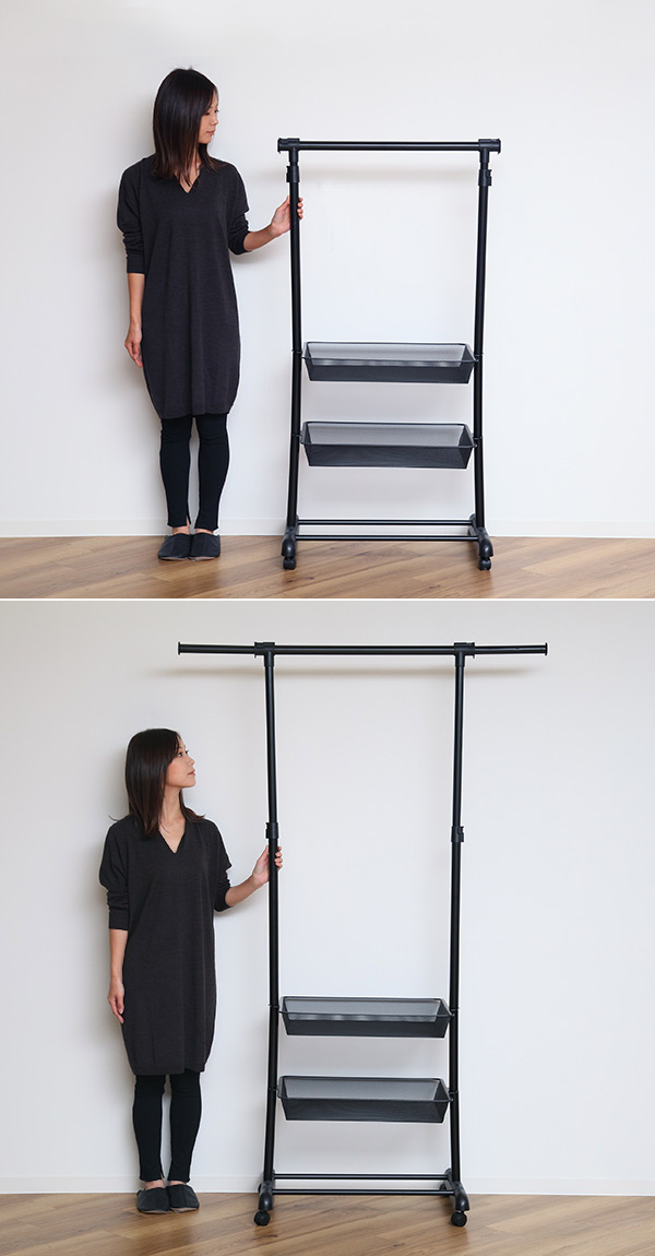 高さの調節 縦のポールを伸ばすと、コートやワンピースなども掛けられる高さになります。 |