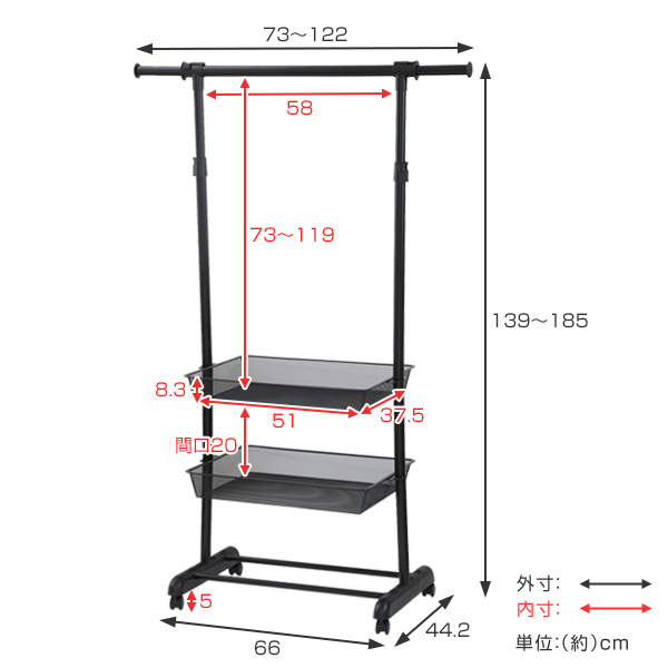 | サイズ | 約 幅73×奥行44.2×高さ139〜185(cm) |