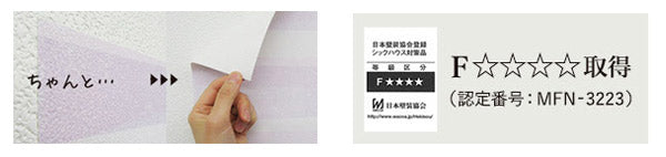 (POINT3)安心の日本製 ホルムアルデヒドがほとんど発散されない、シックハウス対策済みの安全な壁紙です。 |
