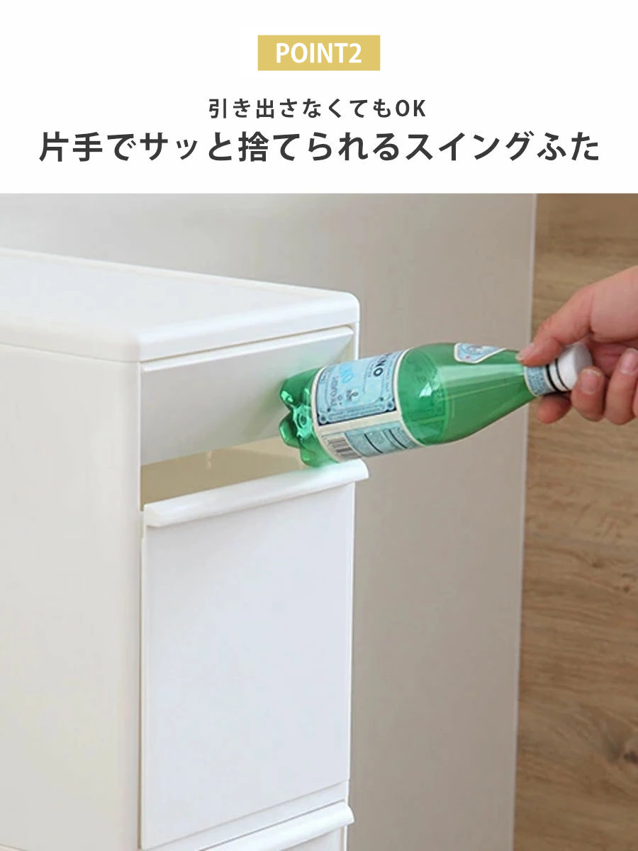 上段は引き出さなくても捨てられるスイング蓋が付いています。プッシュすれば片手でサッとゴミを捨てることができます。