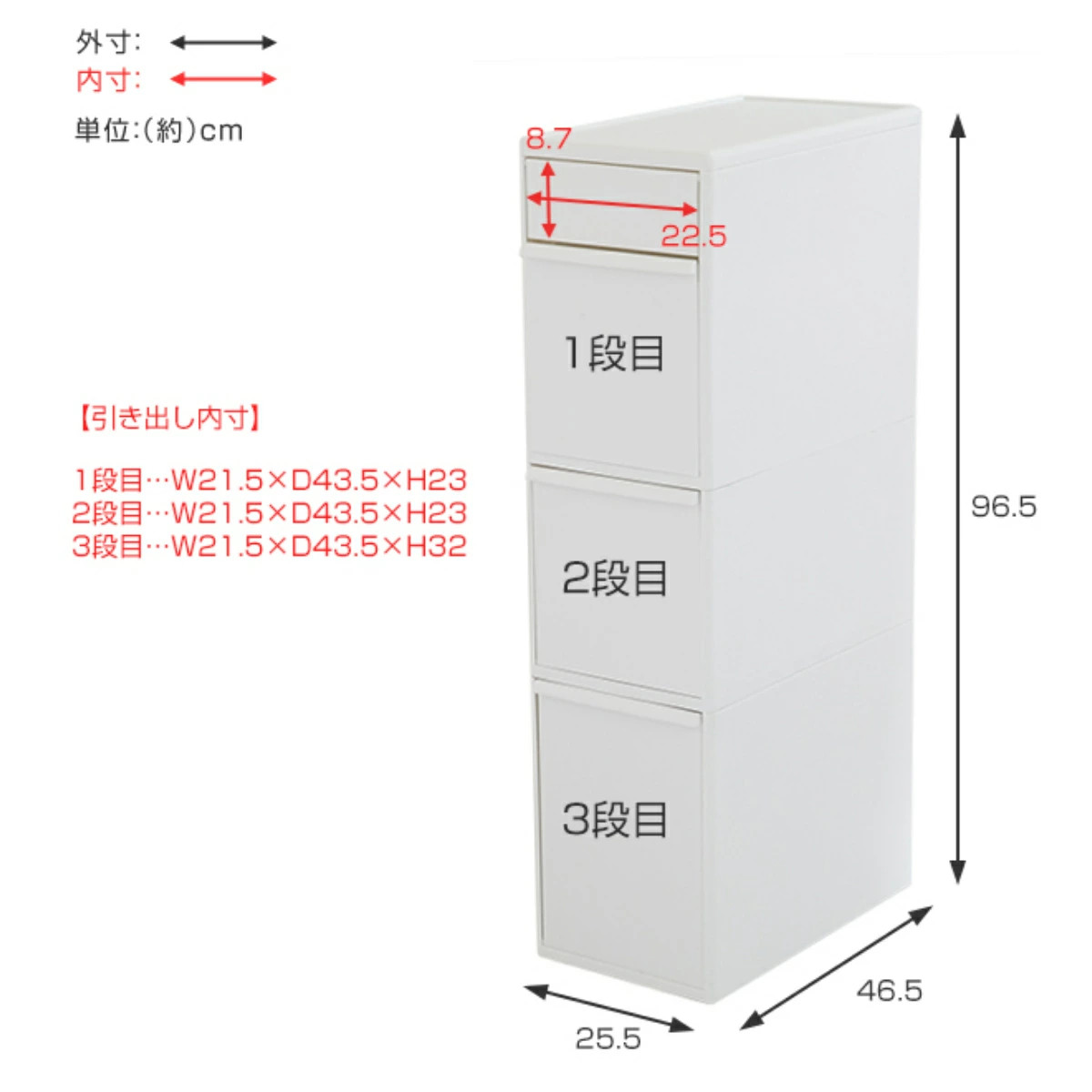 | 容量 | 約 65L 1、2段目:20L、3段目:25L |