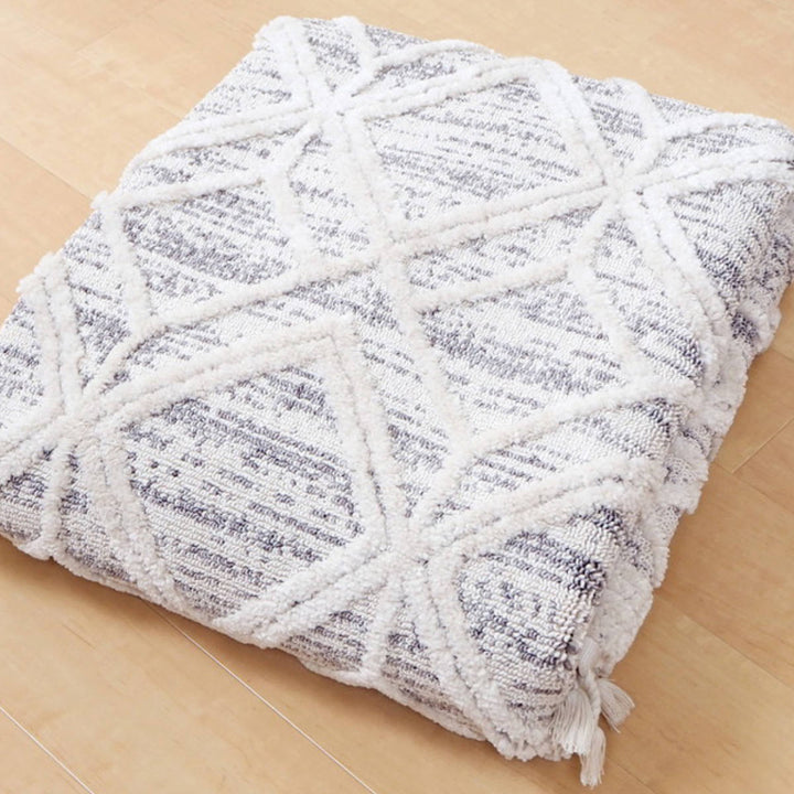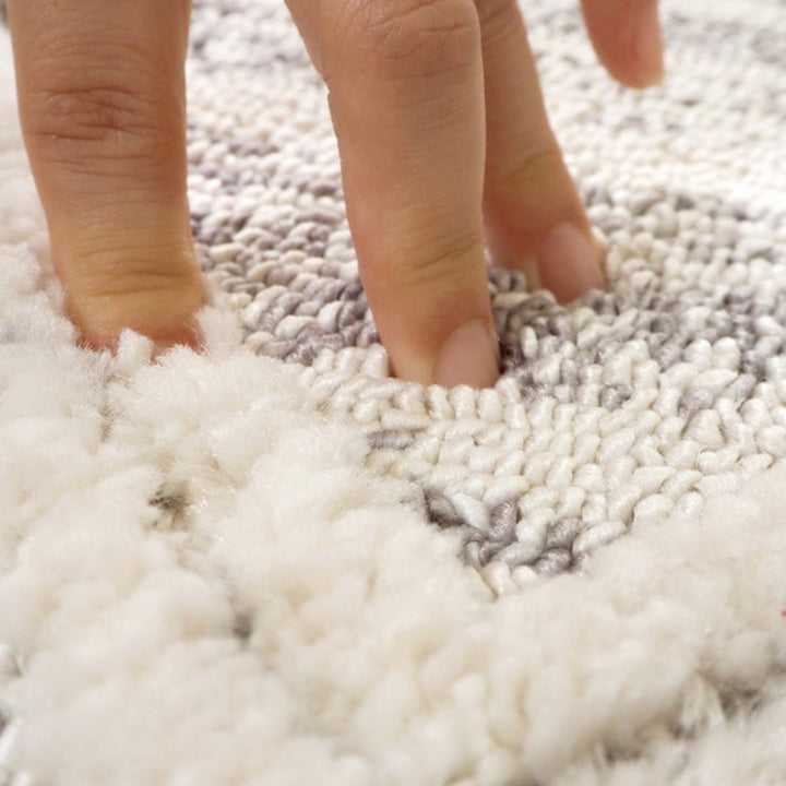 ふわっとした柔らかな4cmのカットパイルと、なめらかな1cmのループパイルの2種類のパイル加工により、立体感のある表面を生み出しました。起伏のある表情がリズミカルな印象を与えます。