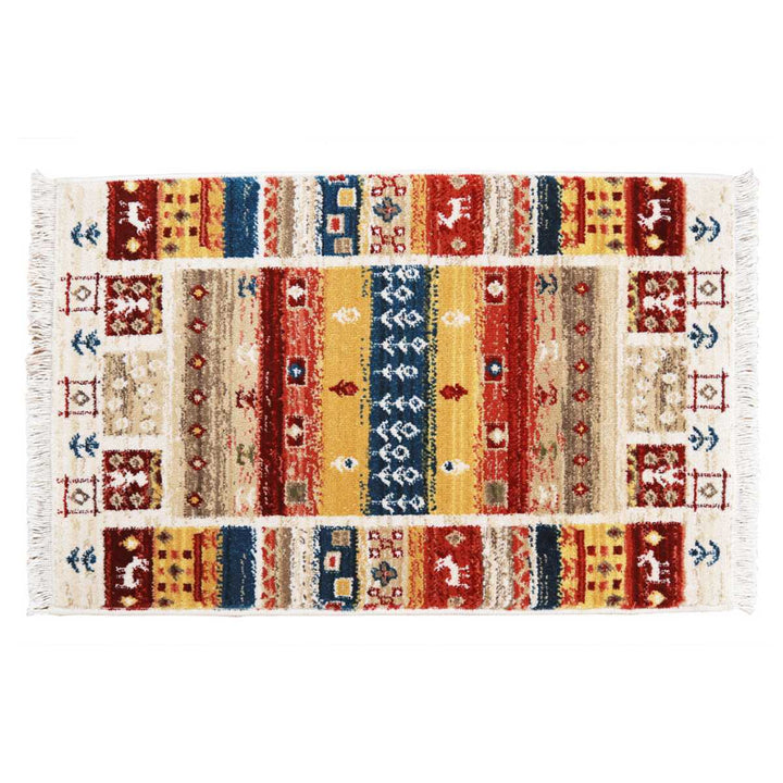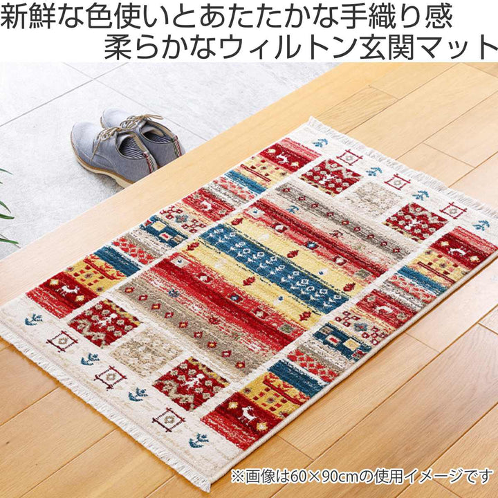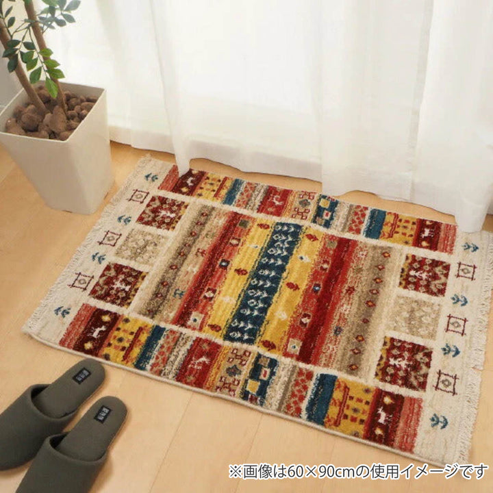 ラグの名産地トルコで作られた、まるで手織り絨毯の様なエスニックなデザインの玄関マットです。ギャッベ模様特有の遊牧民の素朴であたたかなモチーフが、お部屋を温もりのある空間に演出します。
