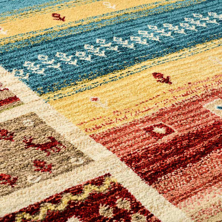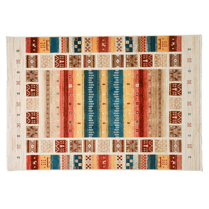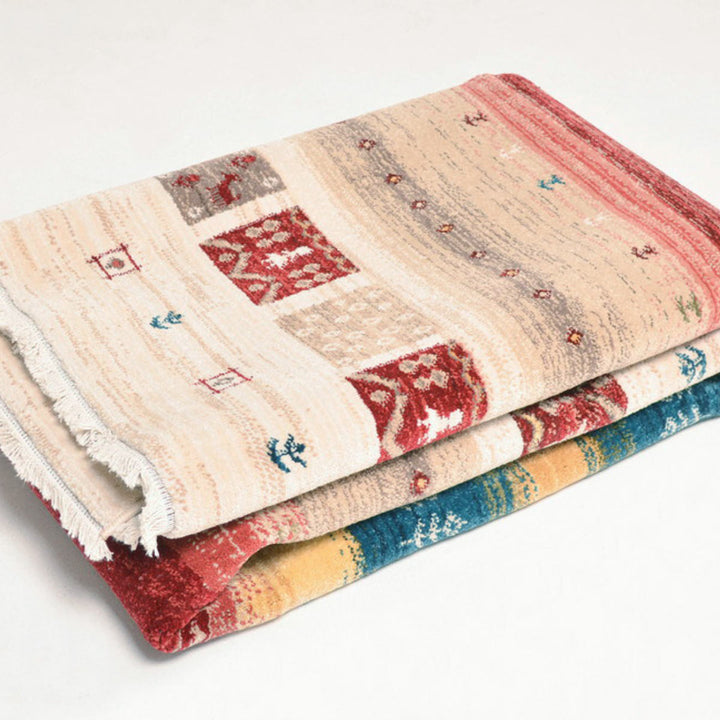 ラグの名産地トルコで作られた、まるで手織り絨毯の様なエスニックなデザインのラグです。ギャッベ模様特有の遊牧民の素朴であたたかなモチーフが、お部屋を温もりのある空間に演出します。