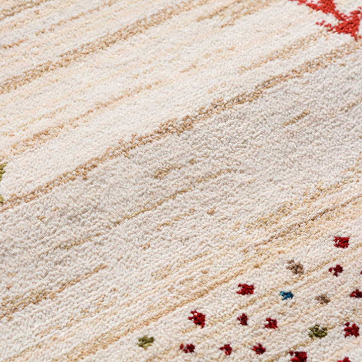 ラグの名産地トルコで作られた、まるで手織り絨毯の様なエスニックなデザインのラグです。ギャッベ模様特有の遊牧民の素朴であたたかなモチーフが、お部屋を温もりのある空間に演出します。