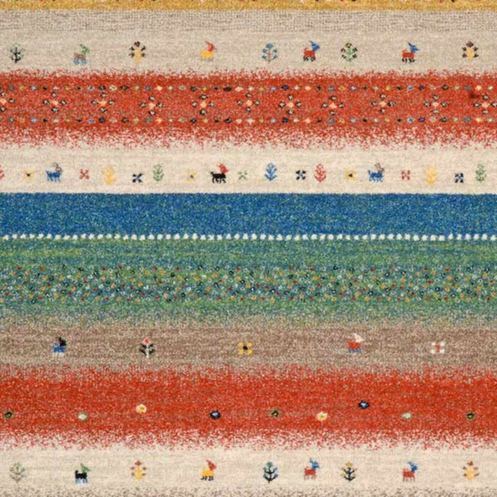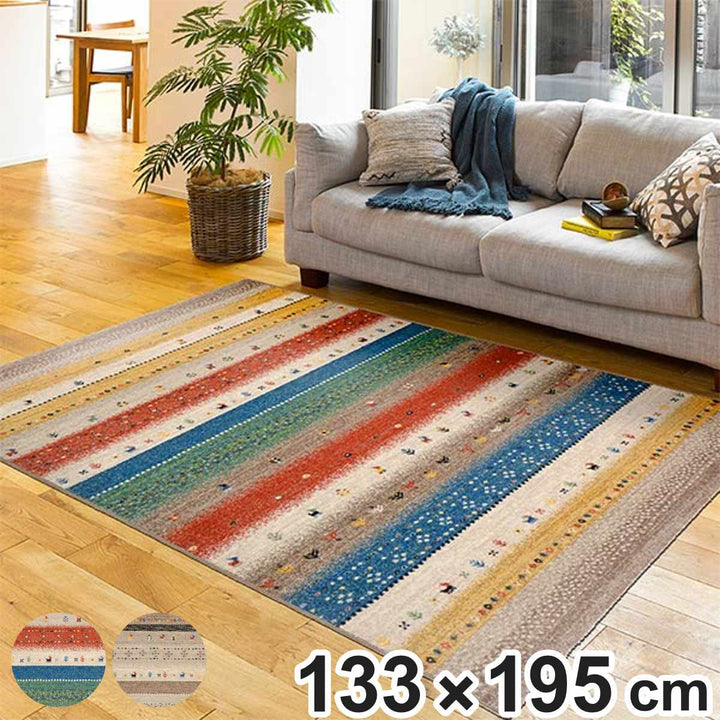 織物の本場ベルギーにて作られたギャッベ風ウィルトンラグです。4種の糸で織られたウィルトン織りは高い耐久性が特徴で、高品質でしっかりとした仕上がりです。長く使いたい方におすすめです。