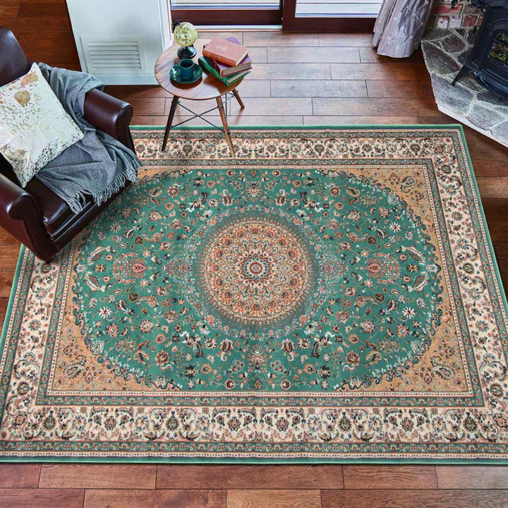 美しく繊細な柄を描いたトルコ製ウィルトンラグです。時代を超えて愛され続けるエレガントなデザインで、お部屋を上品に演出してくれます。