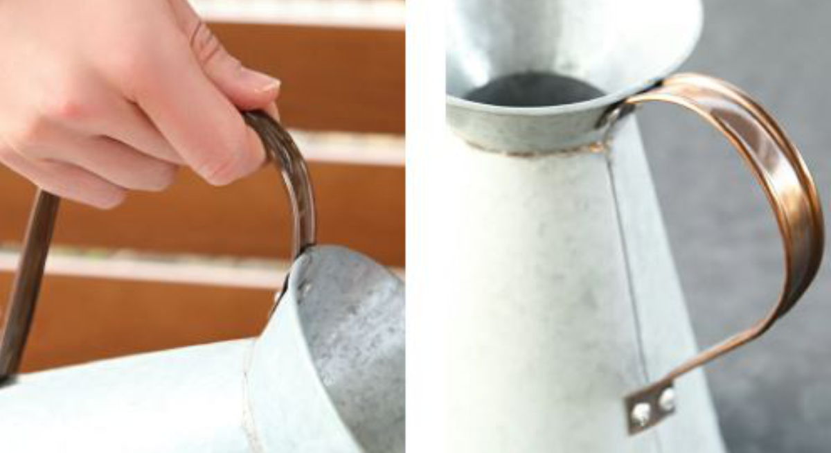 アンティーク調のクラシカルな風合いが素敵な水差しです。落としても割れにくく、錆びても味が出て、お庭に馴染みます。